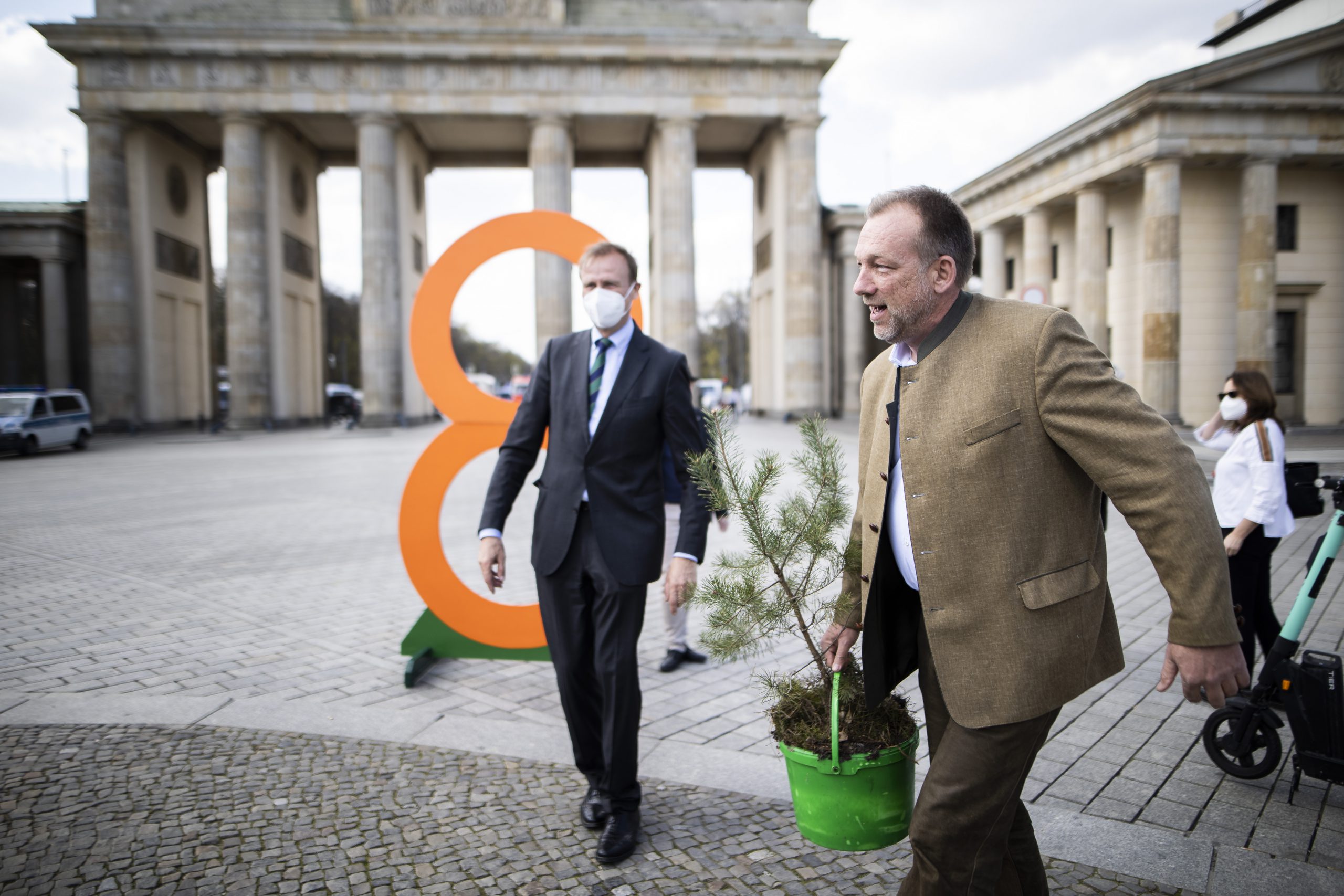 Bundeslandwirtschaftsministerin Julia Klöckner sowie zahlreiche Bundestagsabgeordnete haben heute (Mittwoch) an der Aktion der AGDW und der Familienbetriebe Land und Forst vor dem Brandenburger Tor teilgenommen. Der Vorsitzende der AGDW, Hans- Georg von der Marwitz und der Vorsitzende der Familienbetriebe Land und Forst, Max von Elverfeldt bedanken sich für die Rückendeckung der Politik und weisen zusätzlich auf das von Ihnen entwickelte Modell zur Honorierung der Klimaschutzleistung hin. Dieses orientiert sich an dem stofflichen Anteil des zuwachsenden Holzes, der nicht energetisch genutzt wird. Demnach werden pro Hektar Wald und Jahr der ab 2021 festgelegte Preis von 25 € für eine Tonne CO2 mit 4,5 multipliziert, was einer Entlohnung von 112,5 € pro Jahr und Hektar entspricht. Diese Honorierung der Klimaschutzleistung soll durch den Energie – und Klimafond (EKF) geleistet werden und beträfe 5 % des Gesamtvolumens des EKF`s.